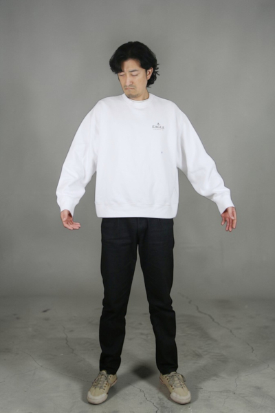 いわゆるオーバーサイズとして着るならOKですが、”ちょうどサイズ”の服として着るには少々ダボついています。