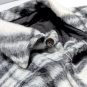 表地はポリエステルジャージ素材にシャギー起毛を施したニット生地。ストレッチ性があり、厚手でもゴワつきにくく、柔らかな着心地が魅力です。裏地は身頃に中綿キルティングを施し保温性を確保しながら、【袖裏にはキルティングを入れず、ストレッチが効いた裏地を使用】することで、腕の動きもスムーズ。厚着になりがちな冬でもストレスフリーです。