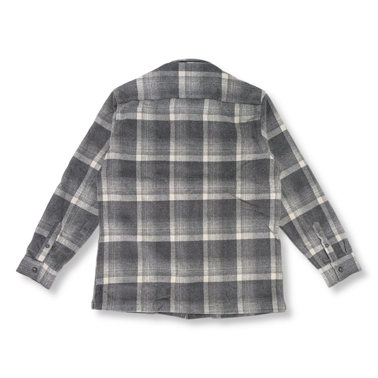 素材はアクリル製で、軽やかであたたかく、ふんわりとしたフランネル特有の柔らかさが魅力。落ち着いたグレー系のチェック柄は、普段使いから、小旅行などのお出かけまで幅広く活躍します。