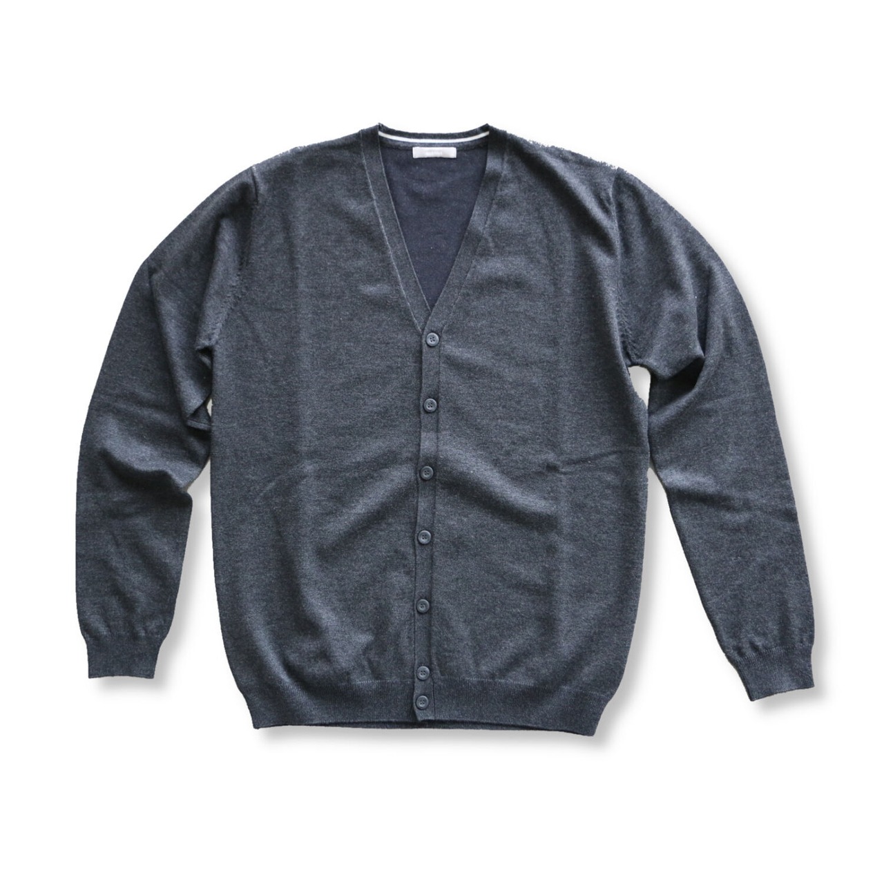 高身長向け、Vネックカーディガン。Vネックはシャープなイメージになりますが、深い(大きい)Vネックは高身長にとっては間延びしたイメージになりがち。その点、このアイテムはちょうど良い感じのVネックで、バイヤーも一目ぼれ。シャツの上や丸首のカットソーに合わせて使えます。スーツスタイルのインナーにもお勧め! 袖の長さも嬉しいポイントです。
