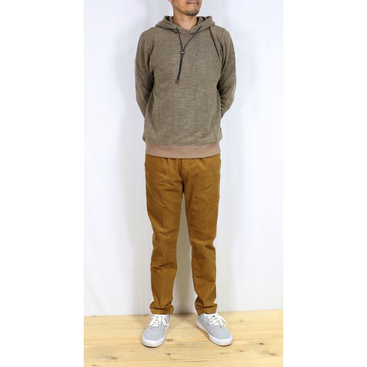 太畝のコーデュロイパンツはカジュアル色が強いですが、このアイテムであればオフィスカジュアル的なジャケパンスタイルにも十分活躍できます。見た目よりも薄手でライトなはき心地。その分、寒い冬の日にはインナーが必要です。