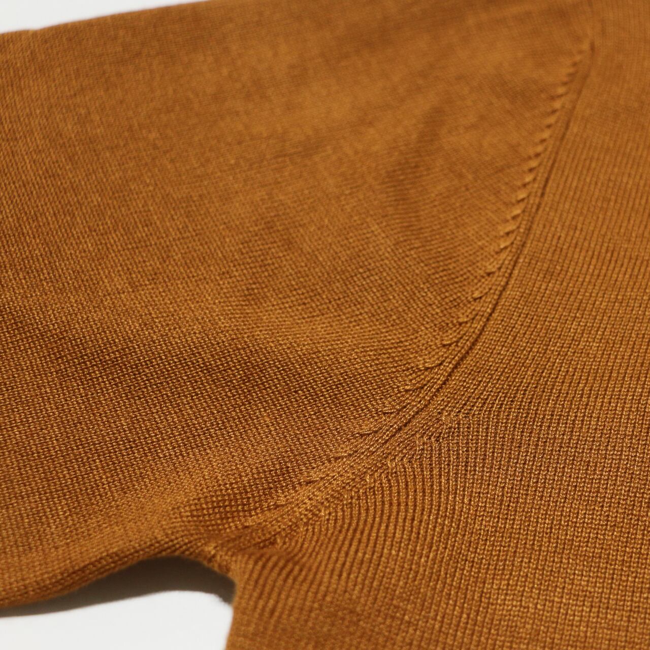 光沢感のある糸で、編み目もキレイ。室内でも一枚着で使える大人な一着です。