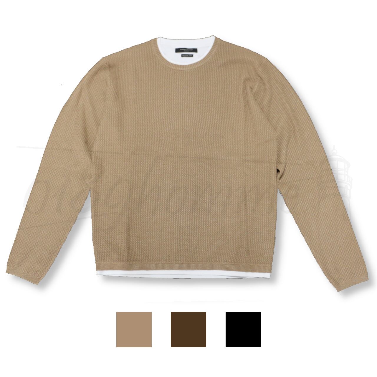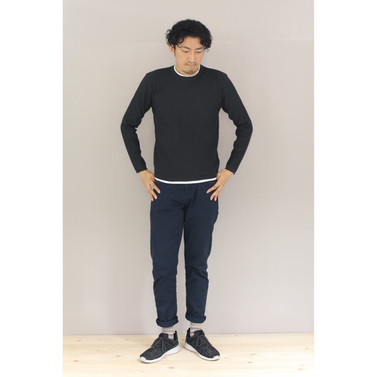ネックと裾にカットソー生地をあしらい、重ね着風に見せた一枚着のセーター。イタリアのブランド【HAMAKI-HO】からのセレクトです。