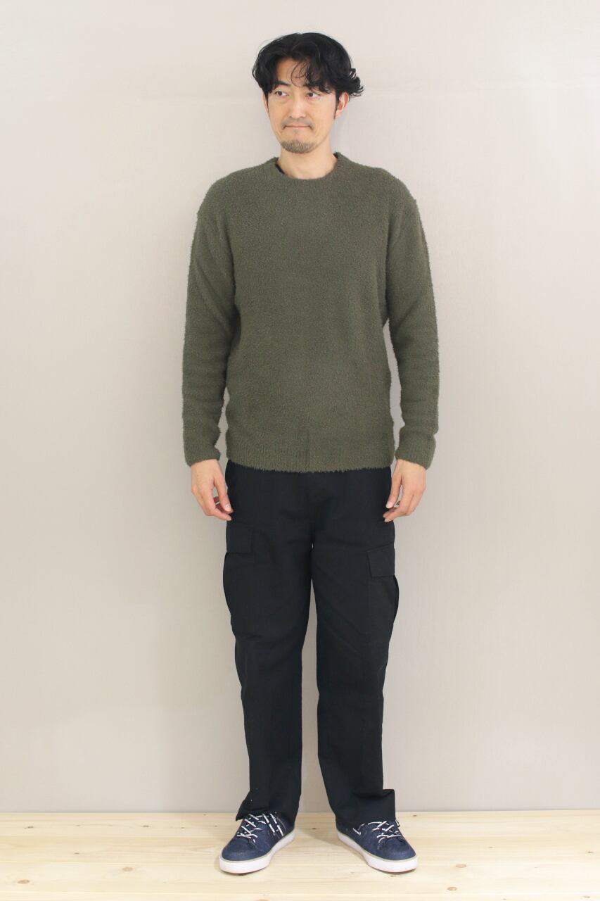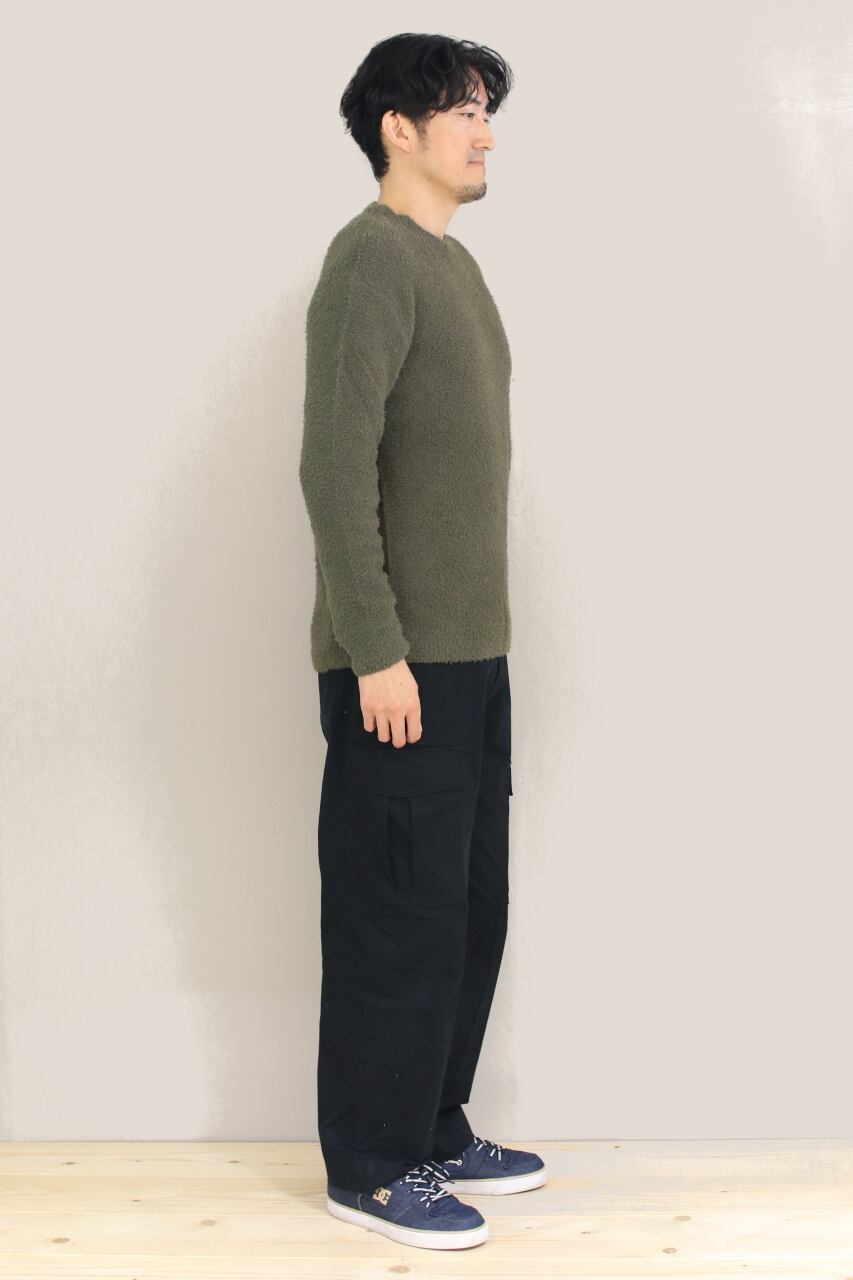 毛足の短いモール糸で表面に光沢があり大人な雰囲気。伸縮性も高く、柔らかく優しい肌触り。シンプルなデザインと落ち着いた色展開で、どの色でもコーディネートは迷うこと無し。普段のスウェットやロンスリのTシャツをこのアイテムに変えるだけ。